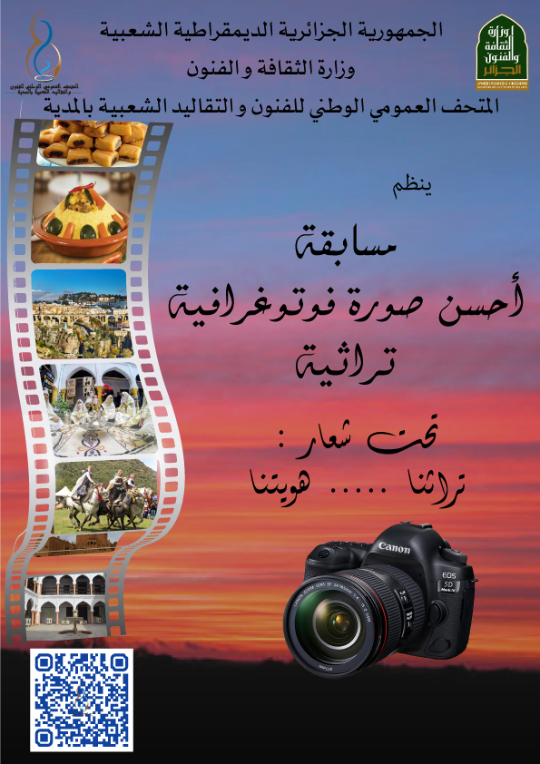 في إطار المسابقة الوطنية لأحسن صورة فوتوغرافية تراثية تحت شعار "تراثنا.................هويتنا". نظم المتحف العمومي الوطني للفنون و التقاليد الشعبية بالمدية، معرض الصور الفوتوغرافية التي شارك فيها 73مصور فوتوغرافي و هاوي في فن التصوير من33ولاية. حيث تحصل على المراتب الثلاثة الأولى كل من الفوتوغرافيين: المرتبة الأولى : حاج قويدر عبد الكريم ولاية غرداية . المرتبة الثانية : بادة زين العابدين ولاية باتنة . المرتبة الثالثة : عزوز محمد ولاية أدرار.