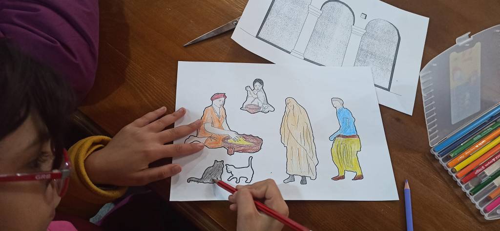 *ورشة التلوين التراثي "وسط الدار في المنزل التقليدي"،تلوين نماذج مصغرة للمنازل التقليدية المزابية والزي التقليدي المزابي.